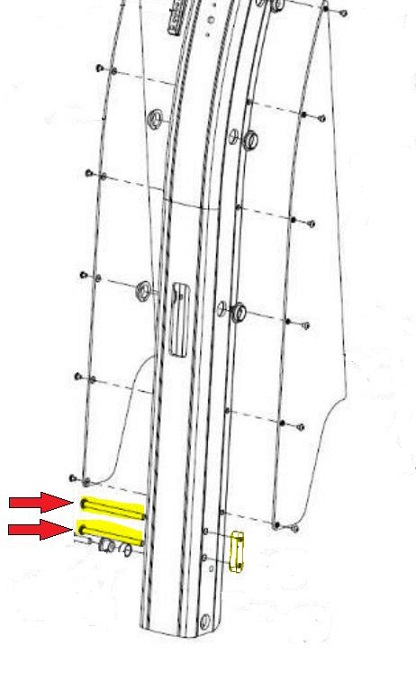 Twee van deze bouten houden het aanslag draaiveer-plaatje voor de AL1-lift op zijn plaats.
